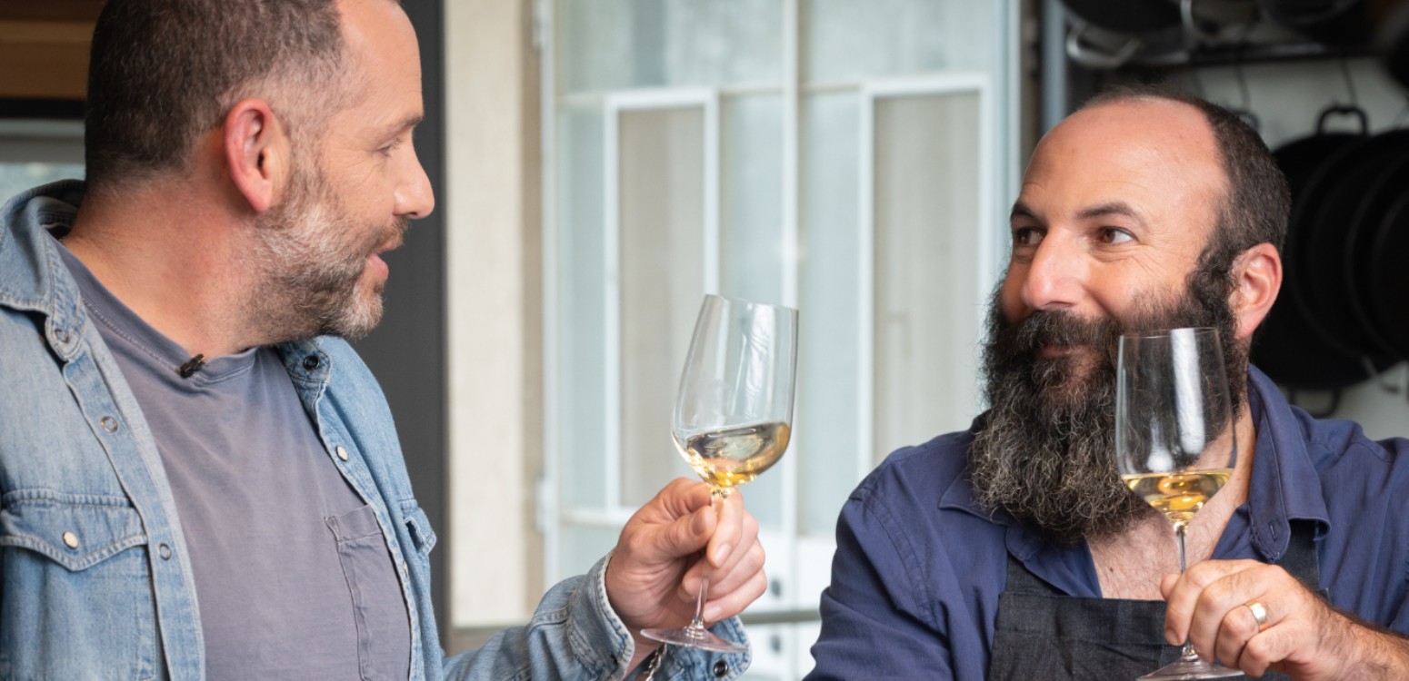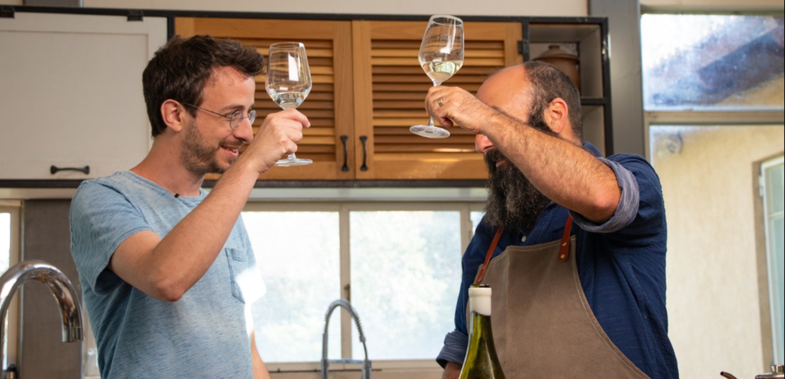 שי צברי רצה להיות טבח, הדיי עפאים רצה להיות זמר. כמו ב"משאלה אחת ימינה", התוכניות שלהם התהפכו. לקראת יום הכיפורים הפגשנו את המוזיקאי והשף לסשן של מוזיקה, בישול ושיחה. הם דיברו על חטאים, על וידויים ועל שערים שנפתחים לעולם הבא; על מוזיקה שעושים איתה ספונג'ה, והיא לא פחות "גבוהה" משירים שצועקים כאב; על תהליכי יצירה ועל תפילה כוויטמינים. מפגש מעורר תיאבון שמתחיל ביין לבן, ממשיך בסלט חיטה וענבים ומסתיים בשיר שכתב אבות ישורון, משורר חידתי וזר נצחי.