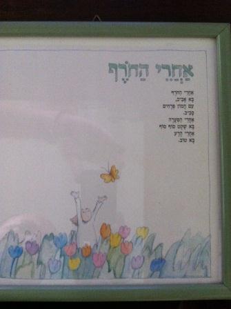 בחדר העבודה שלי בבית, על הקיר, ממש ליד שולחן הכתיבה, חי לו כבר שנים רבות שיר בתוך מסגרת בצבע ירוק בהיר. מילות השיר, המעוטר בציור פשוט שכאילו נלקח מספר ילדים, אמורות לעודד כל מי שמרגיש שבר בחייו: