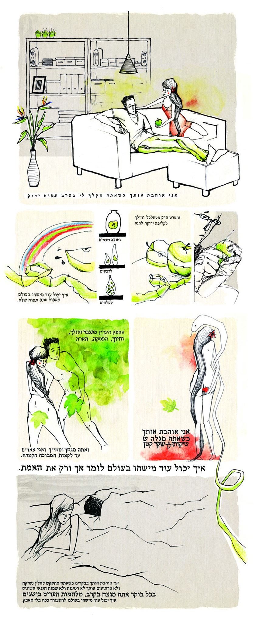 איה כורם אוהבת אותו כשהוא מקלף לה בערב תפוח ירוק. אז היא כתבה על זה שיר, וענת צליכובר איירה אותו