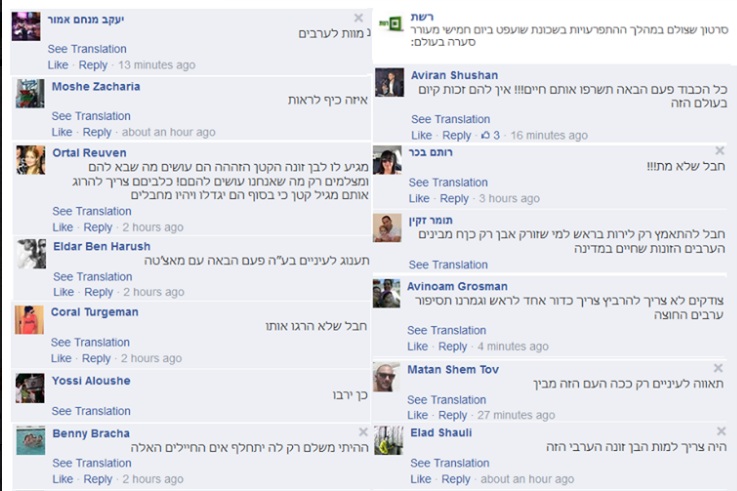 דוגמית מתוך העמוד "גזענים שמדכאים אותי". בזהויות גלויות