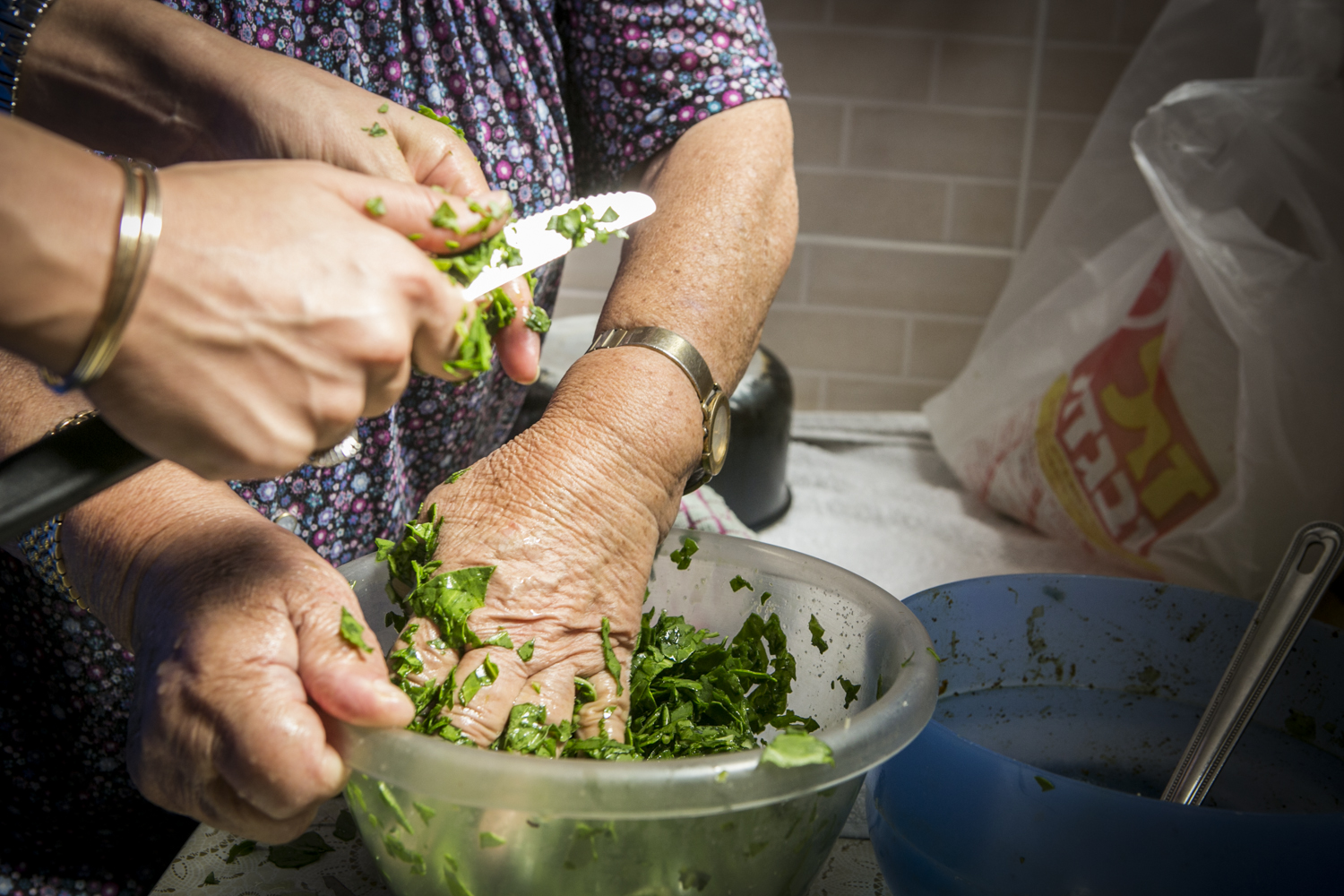 למרות הגיל והכוח שאוזל, סבתא של יערה לא חולמת אפילו להעביר לאחרים את זכות האירוח. במקרה שלה, זה אף אתגר כפול ומכופל, היות שהיא לא מסתפקת לשם כך בתחזוקה של מטבח אחד בלבד, אלא שניים. "יש לה שני מטבחים שונים לגמרי – האחד יפה, שמור ונקי", מספרת יערה, "והמטבח השני הוא זה שמבשלים בו. אנחנו קוראים לו 'המחסן' – המטבח האמיתי".