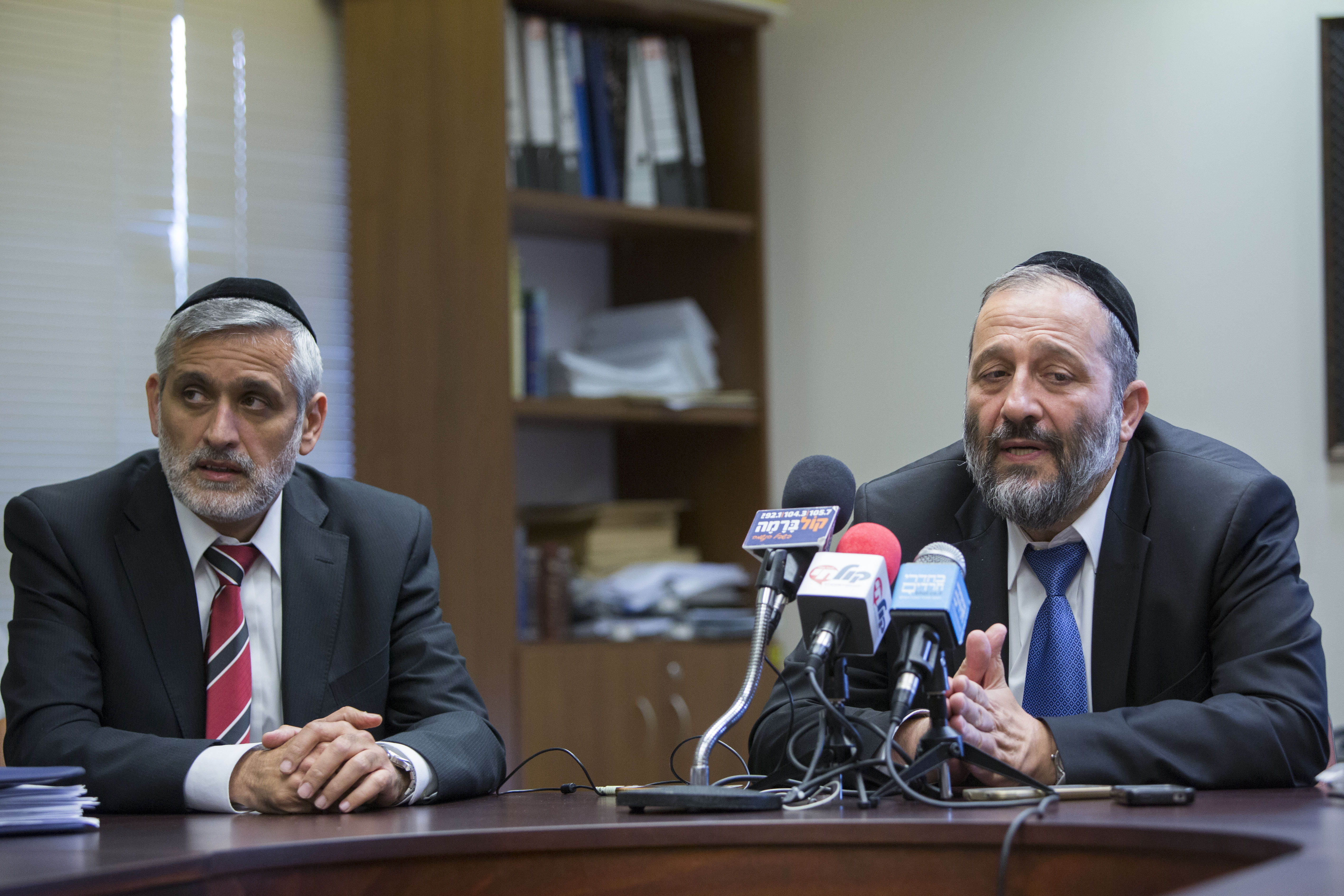 ![]() דרעי (משמאל) וישי, ערב הבחירות הקודמות, ב-2013 (צילום: יונתן זינדל, פלאש90) |