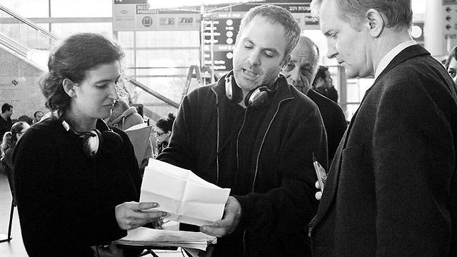 מיכל ברזיס (משמאל) ועודד בן נון (במרכז) על הסט של "איה"