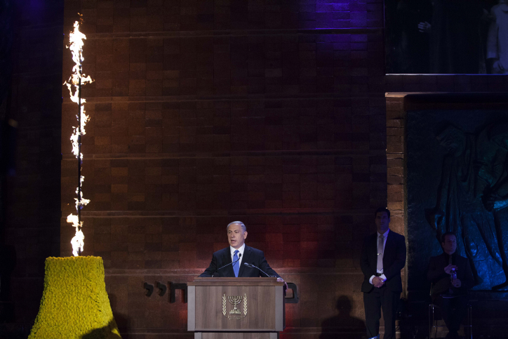 ![]() נתניהו, בטקס יום הזיכרון לשואה ולגבורה ביד ושם, 2014. איזו פרדיגמת גאולה עומדת בתשתית האתוס הישראלי (צילום: יונתן זינדל, פלאש90) |