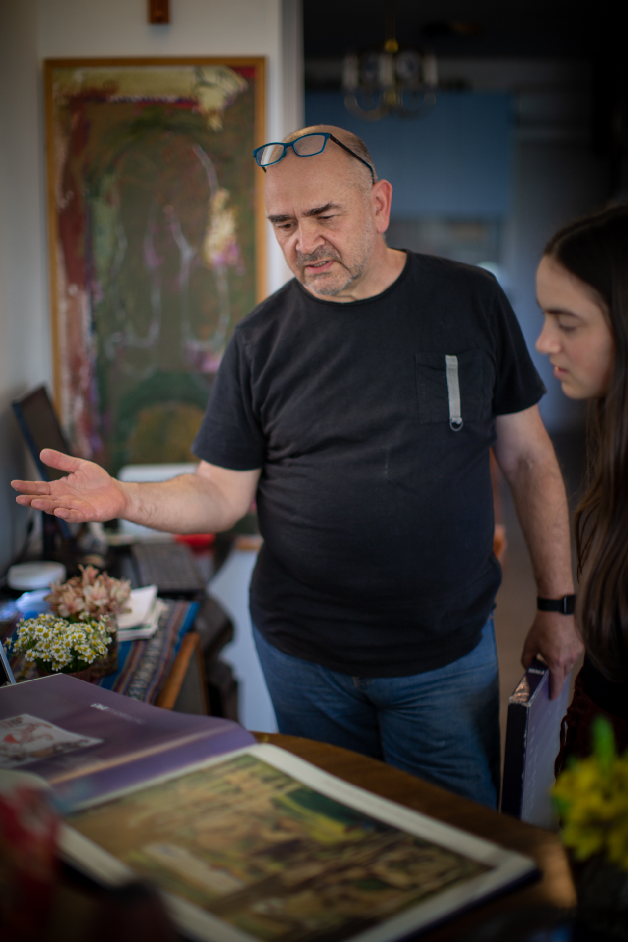 על פסנתר הכנף שבסלון ביתם מונח ספר גדול שעוסק בתקופה המכונה "העונות הרוסיות בפריז", תקופה חשובה באמנות הרוסית ובאמנות בכלל שהתרחשה בין 1908 ל-1929, השנה שבה נפטר מבקר האמנות ומפיק הבלט סרגיי דיאגילב.