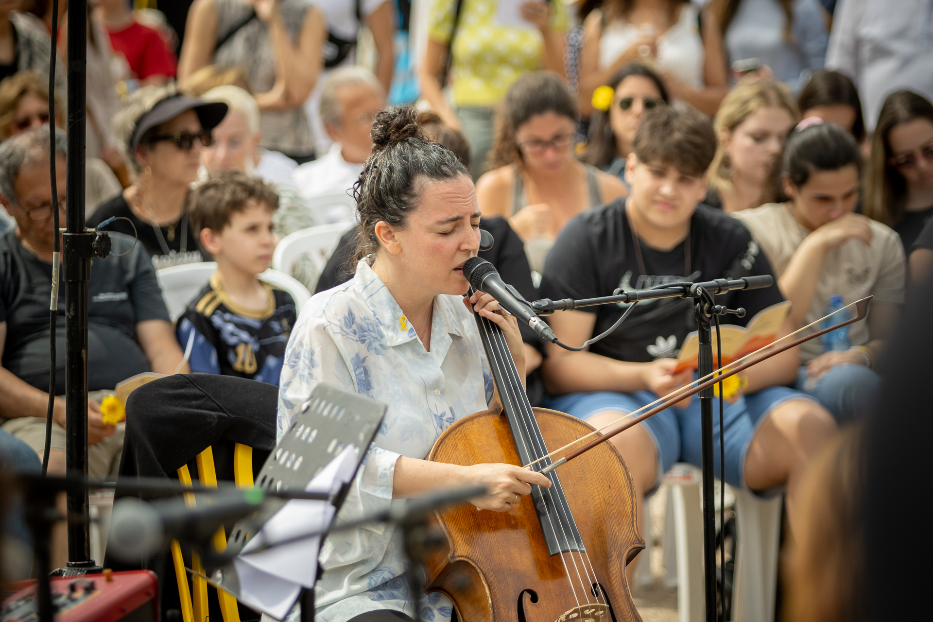 פרחים צהובים חולקו למשתתפי האירוע וכן חוברות שירים המכילות את מילות השירים שהושרו באירוע. המוזיקאים המקצועיים הובילו את השירה המשותפת של שירים ממגוון תקופות, כגון "הללויה" של לאונרד כהן והפיוט לכה דודי, שהולחן במאה ה-16 על ידי המקובל הצפתי שלמה הלוי אלקבץ.