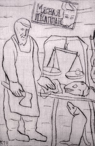 Anatoly Kaplan’s work presents the world as it is. “You will find in his works no abstract, hypertrophied image or concepts of Death, Birth, Suffering, Dream of the kind that you often find in Chagall,” writes Mikhail German. “His drawings and pictures contain no direct symbolism. Instead, Kaplan’s symbolism is concealed behind accurate, precise demonstrations of detail… the impressive quality of [Kaplan’s] drawings lie in the fact that in them nothing is concealed or encoded. They are clear, utterly devoid of ambiguity. And, like a kind of emotional axiom, each line is so precise that it takes one’s breath away with its perfect, utter expressiveness.”29