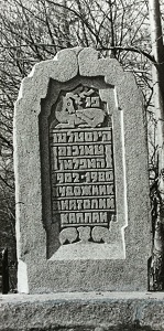 Tanchum ben Levi Yitzchak and Sarah Kaplan died on July 3, 1980. He was buried in Leningrad, his tombstone designed by artist David Goberman, Kaplan’s friend. Goberman had sketched and photographed hundreds of Jewish tombstones in the towns that belonged to the Pale in the 1930s to the 1960s. Kaplan had used Goberman’s photographs to create his works of art, so Goberman’s design is symbolic. The top of the tombstone reads, in Yiddish: “The Artist Tanchum Kaplan 1902-1980.” The image of a goat, his most beloved animal that in many ways represents the world he never forgot, adorns the top of his matzevah.