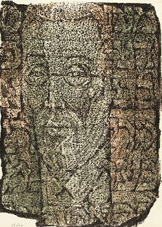 Mastering the technique independently, Kaplan sculpts from fireclay, molding, painting, glazing, at times adding forms onto flat slabs of clay, using engobe to decorate and to give his ceramics depth, color, dimensions, and visual range. As with his approach to lithography, Kaplan becomes a tormentor of clay, pinching, digging with his fingers, using metal objects to form shapes, at times adding gold, glaze, shiny glass, at others using simple lines and forms to create powerfully expressive and emotional pieces.