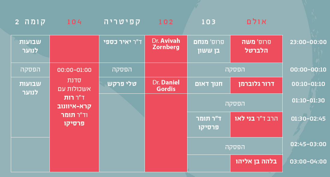 23:00 – 00:00 אהבה ויראה- פילוסופיה והחוויה הדתית – פרופ' משה הלברטל