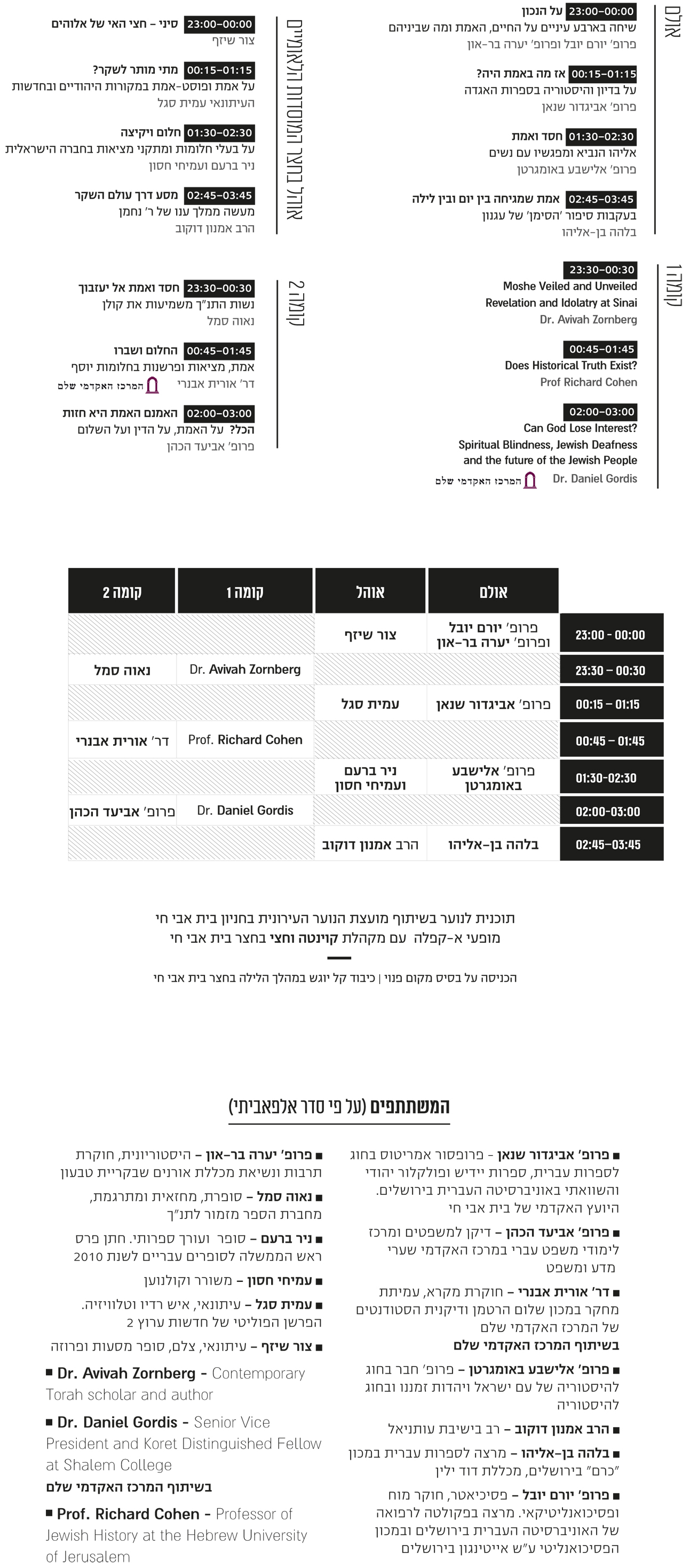 ד"ר אביבה זורנברג | עמיחי חסון | פרופ' יורם יובל | פרופ' ירחמיאל כהן | עמית סגל