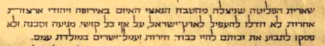 В седьмом абзаце Декларации написано: «Остатки уцелевших от ужасного нацистского истребления в Европе, а также евреи из других стран, не прекращали стремиться в Землю Израиля, несмотря на все трудности, препятствия и опасности, и не переставали требовать своего права на достойную жизнь, свободу и честный труд на родине».