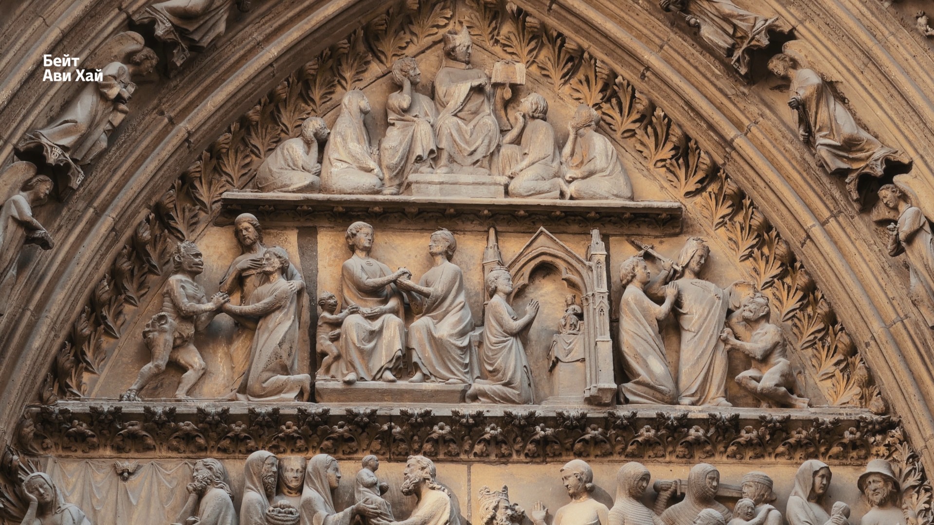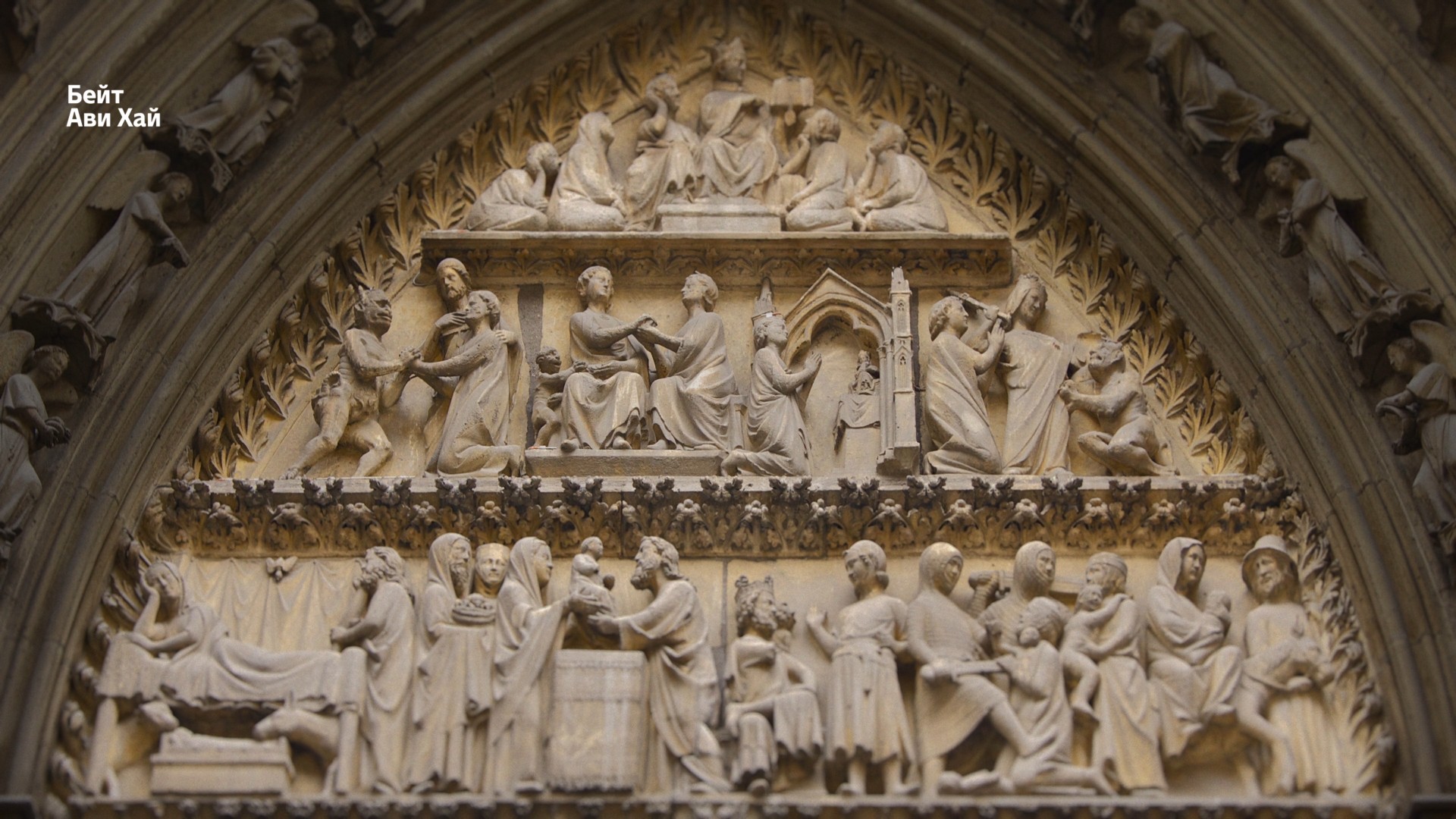 Давайте вглядимся в это изображение. Тимпан над вратами разделен на три регистра.