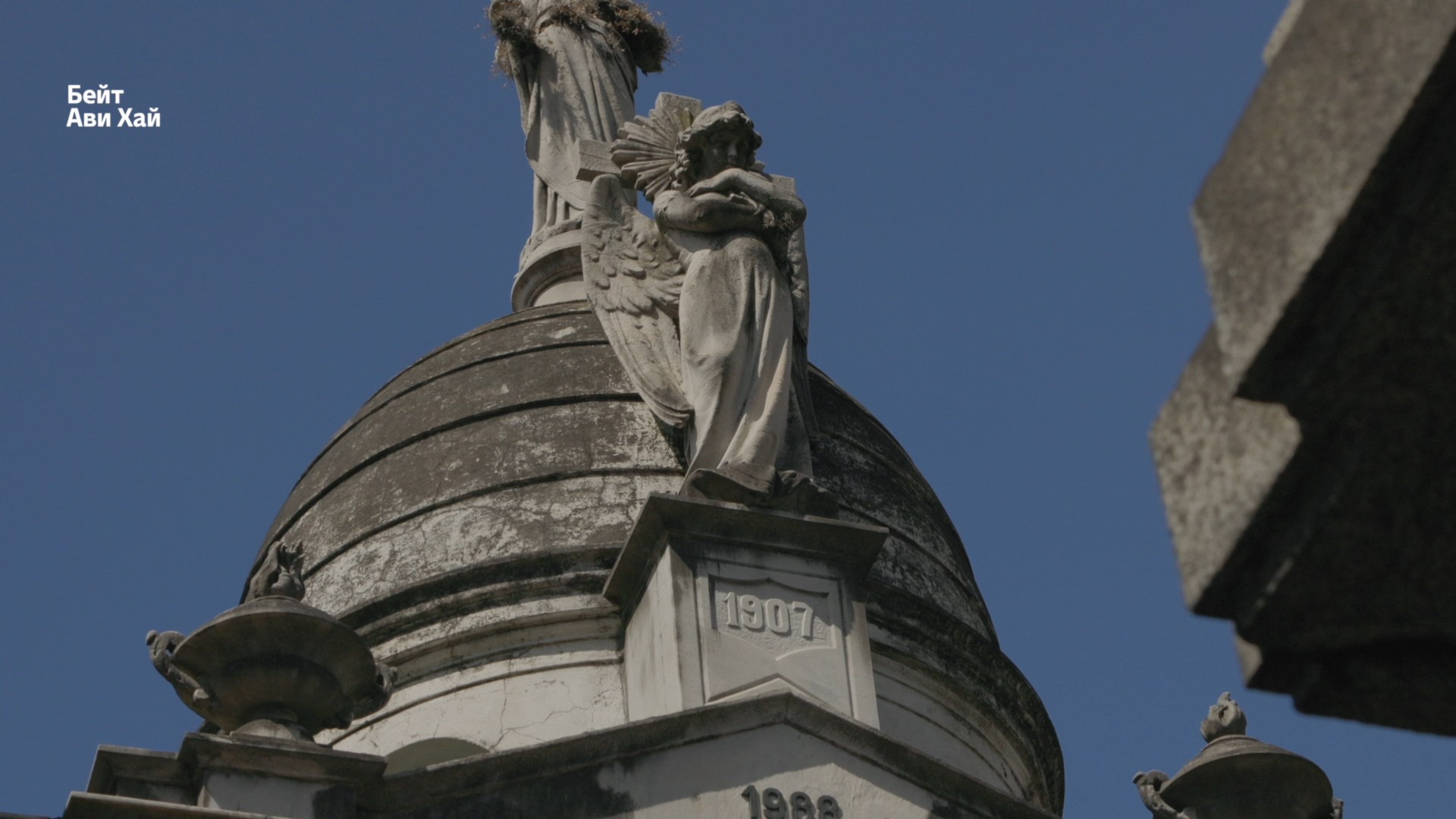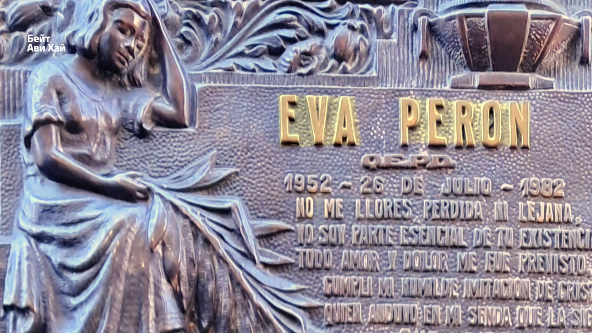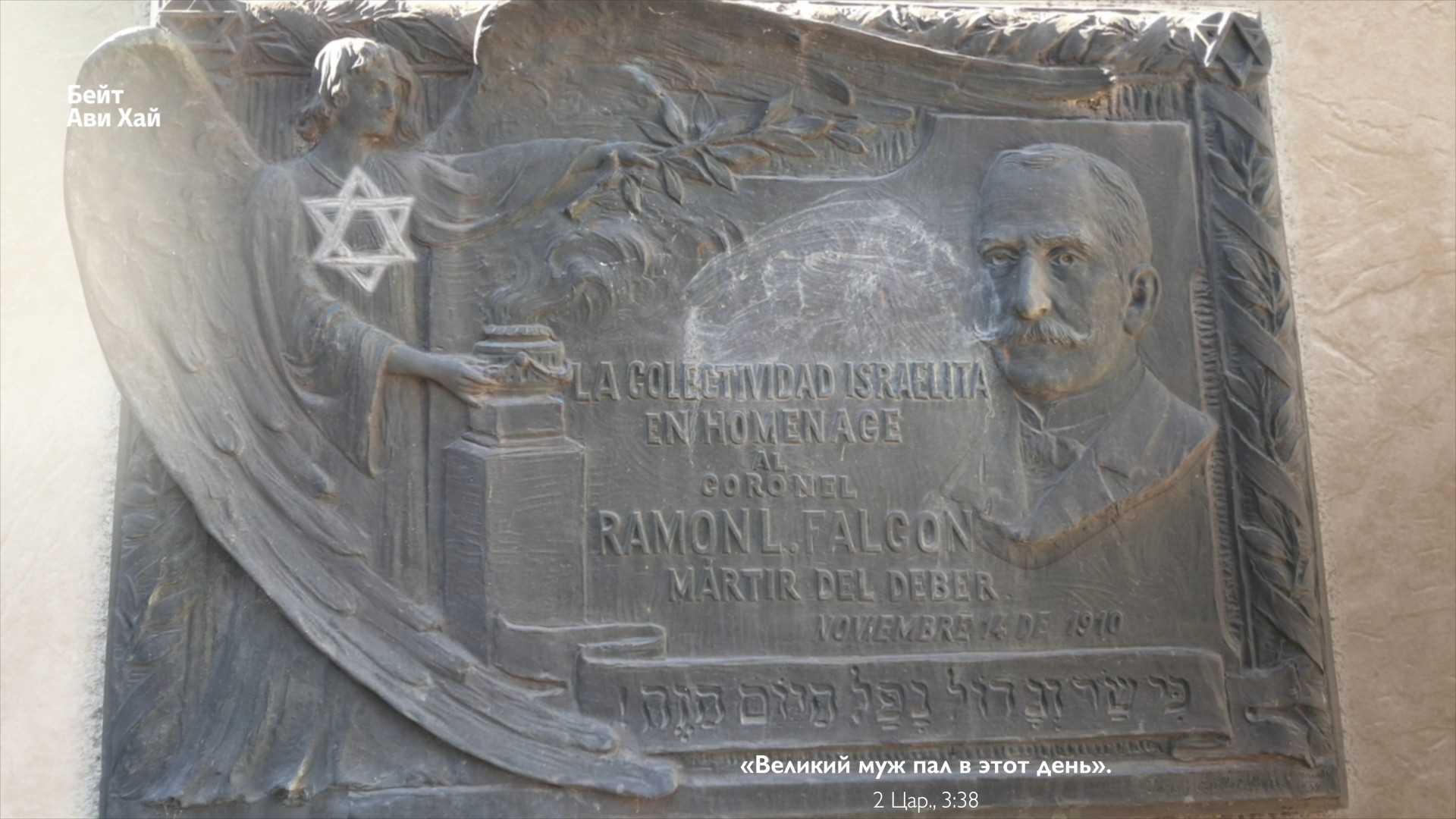 Но среди этого величия мы встречаем нечто неожиданное. На мемориальной плите, установленной в честь полковника Рамона Фалькона, изображен ангел, портрет офицера и звезда Давида с надписью на иврите.