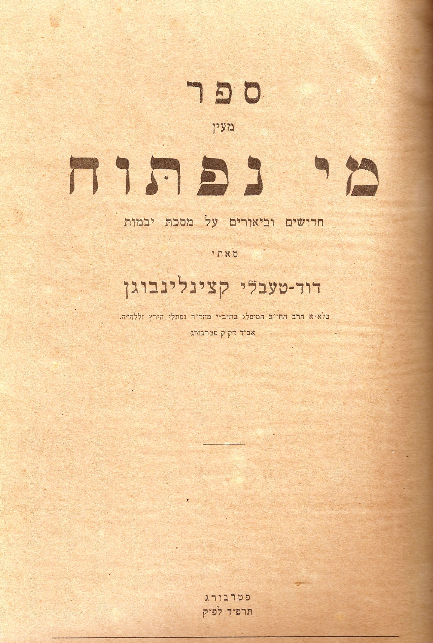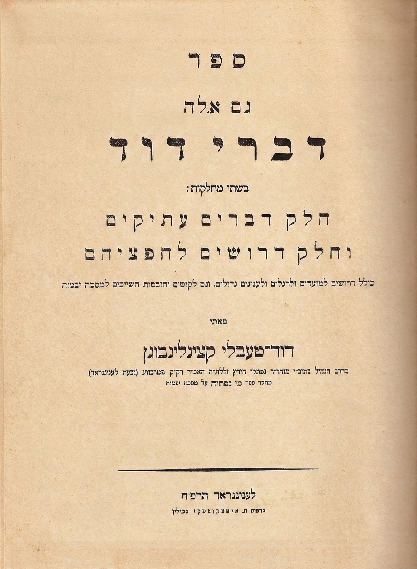Последняя книга, которая все-таки была издана, это книга 1923 года, проповеди и сочинение главного петербургского, а потом ленинградского раввина, очень колоритной фигуры, Давида-Тевеля Герцелевича Каценеленбогена.
