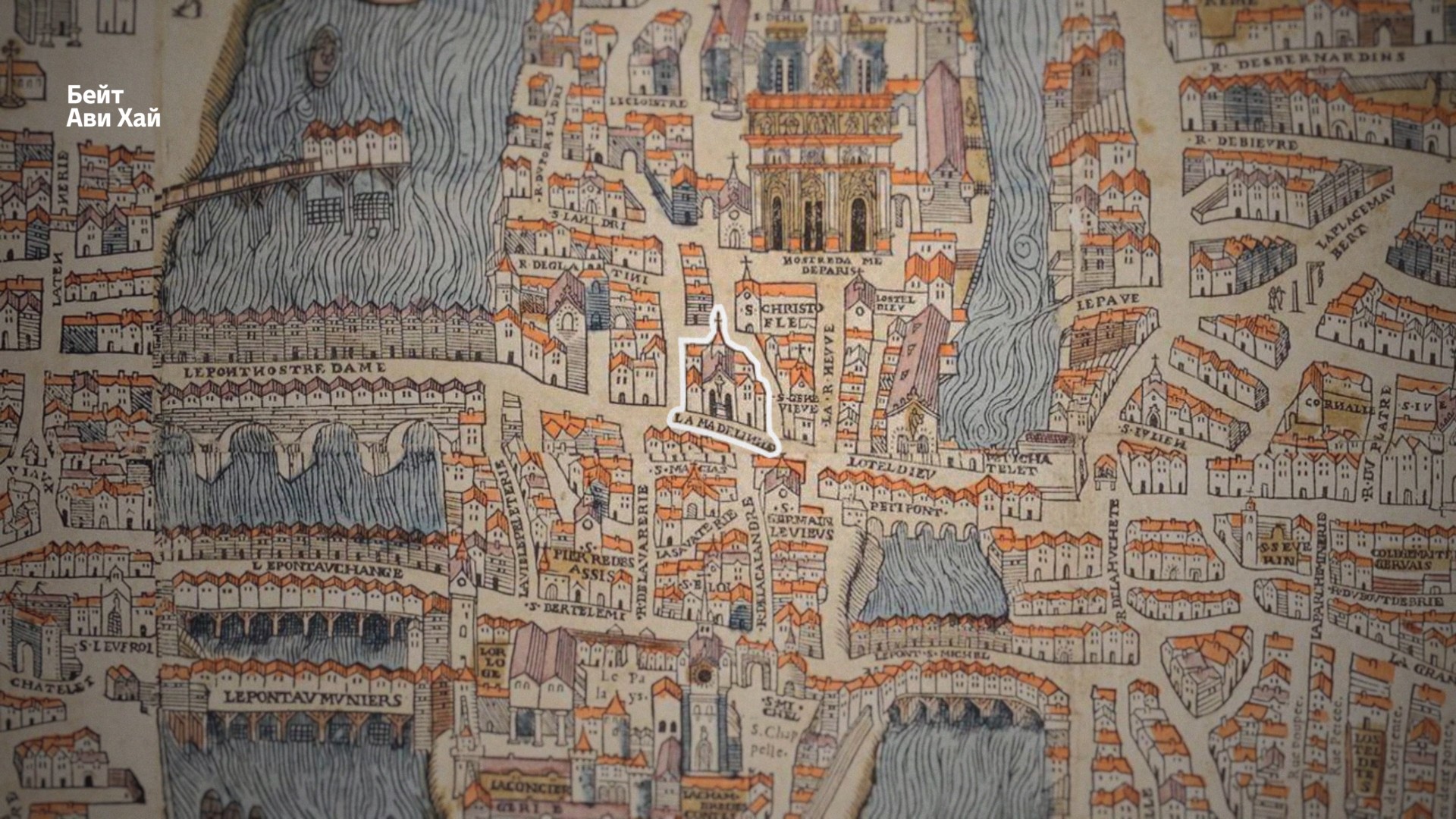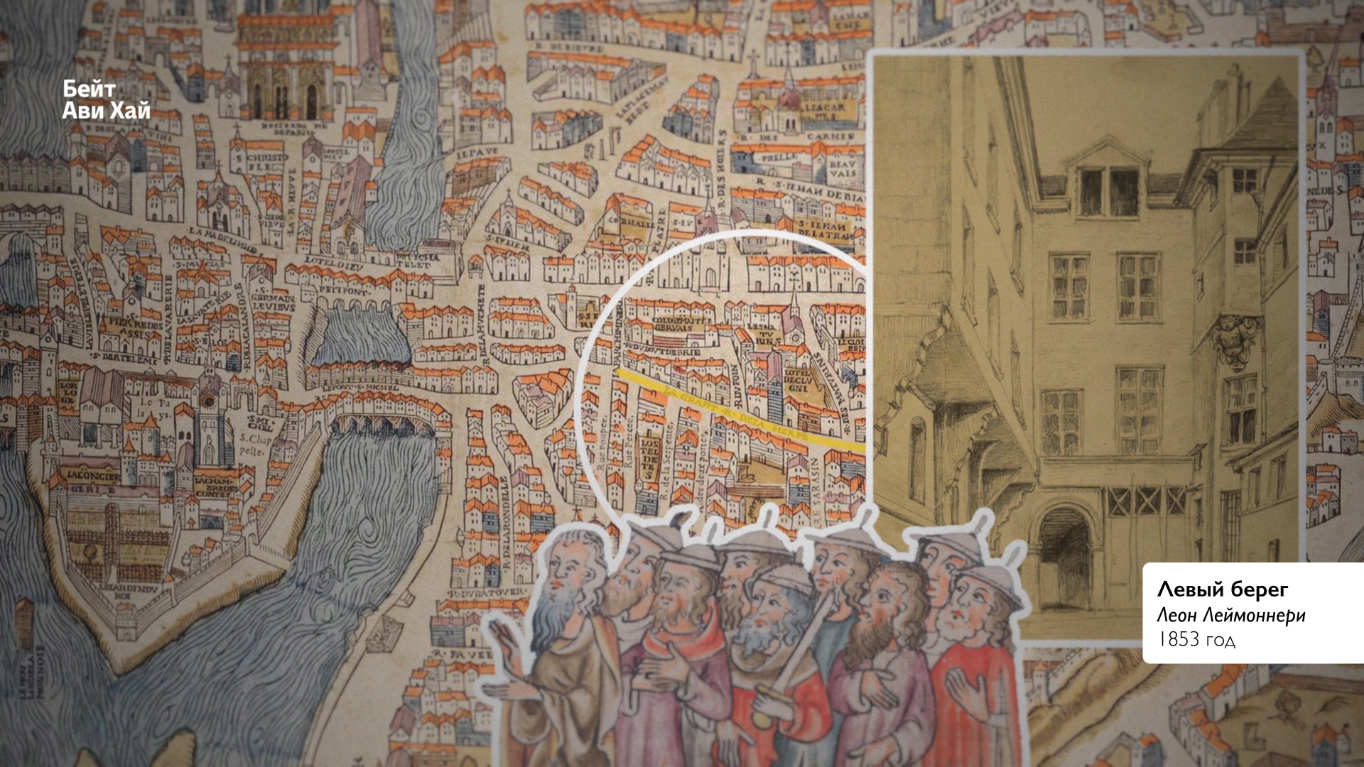 Мы с вами стоим на Еврейском острове посреди Парижа. Вон там Сент-Шапель — часовня-реликварий, где некогда хранились святыни, связанные со Страстями, дальше собор Нотр-Дам. Справа и слева — два рукава реки Сены. Стоп… Но в Париже нет никакого Еврейского острова. Это остров Сите.