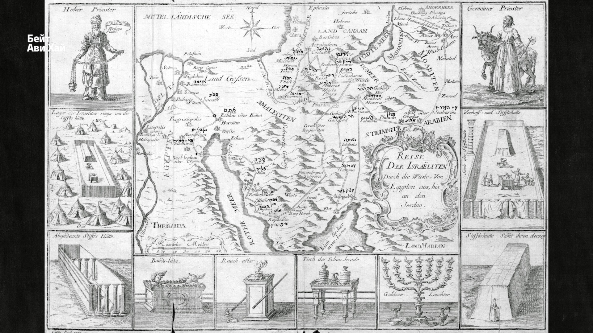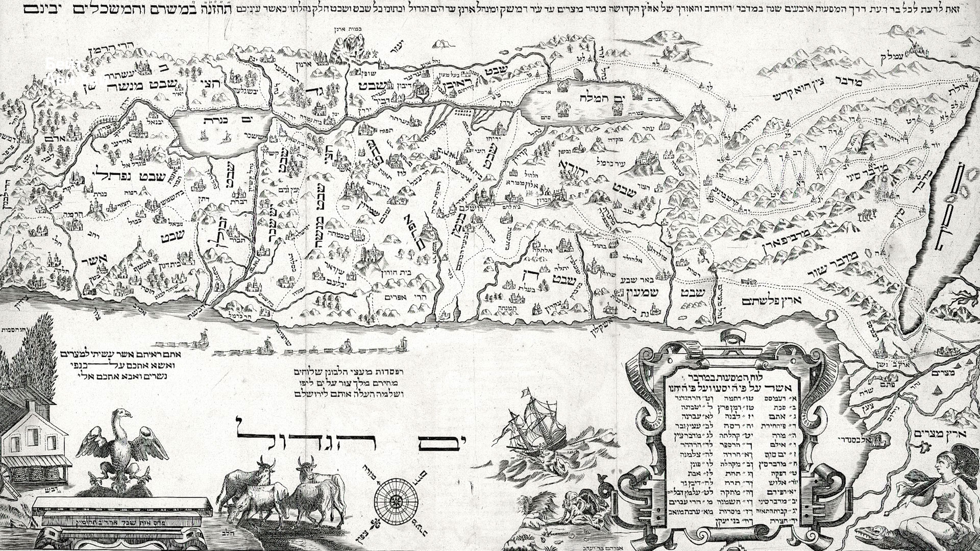 Здесь было бы уместно показать карту еврейских странствий. Впервые она появляется в издании 1695 года, это одна из самых ранних печатных карт Святой Земли.