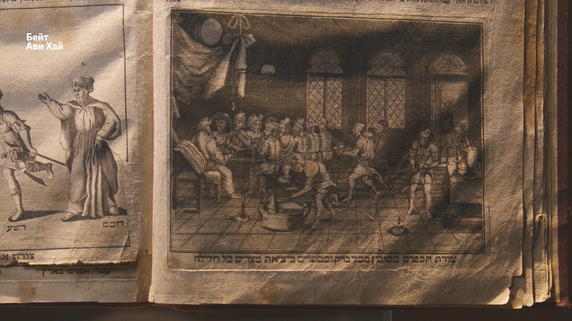 Давайте присмотримся к другим гравюрам. Вот заседание мудрецов, которые в Бней-Браке рассказывают об Исходе из Египта.