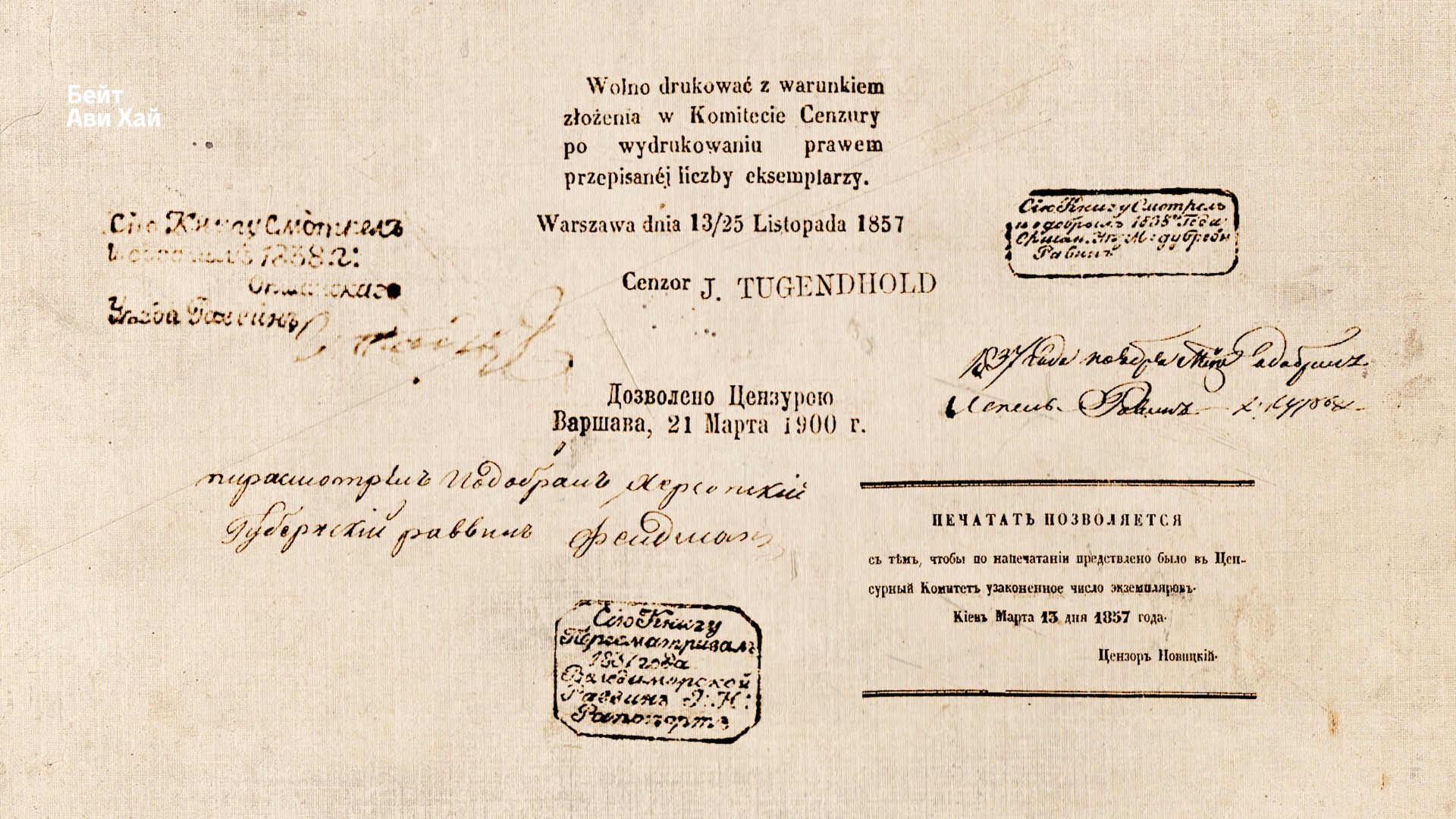 Но бывает и так, что на конкретной книге нет никаких знаков принадлежности к библиотеке Шнеерсонов, зато есть разного рода записи (владельческие, дарственные), содержание которых свидетельствует о том, что они были сделаны представителями движения Хабад. Такие надписи не уникальны для Хабада. Книги часто становились «памятными». На пустых листах отмечались знаменательные даты семейной истории и религиозные церемонии, сопровождающие жизнь иудея: даты рождения детей, обрезания мальчиков, совершеннолетия, свадьбы и чтения поминальных молитв. В определенные исторические эпохи в судьбы книг вмешивались и внешние идеологические силы — цензорские записи (в нашем случае, штампы Цензурного комитета Российской империи). Подобные записи являются важнейшим источником изучения бытования конкретного экземпляра. А совокупность таких записей становится бесценной фактологической базой еврейской бытовой истории и шире — истории повседневности.