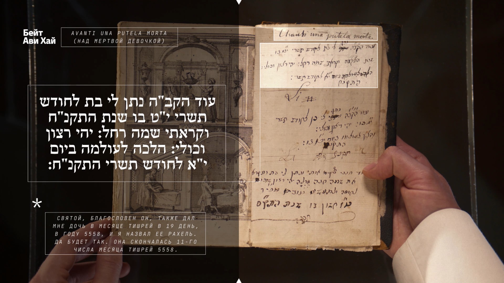 Святой, Благословен Он, также дал мне дочь в месяце тишрей в 19 день, в году 5558, и я назвал ее Рахель. Да будет так. Она скончалась 11-го числа месяца тишрей 5558.