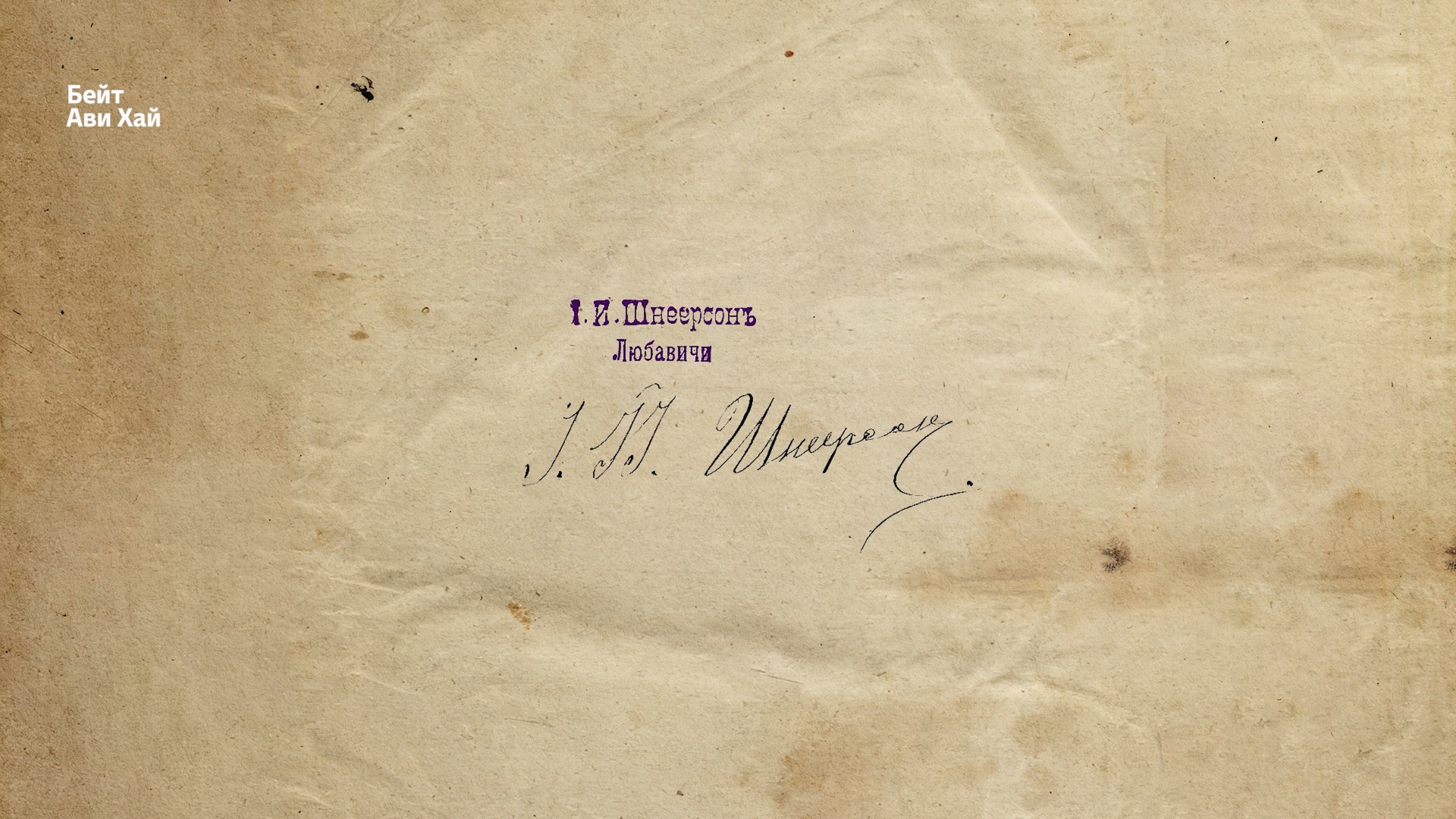А еще это сделанный фиолетовыми чернилами штамп на русском и даже подпись Йосефа Ицхака Шнеерсона под ней.